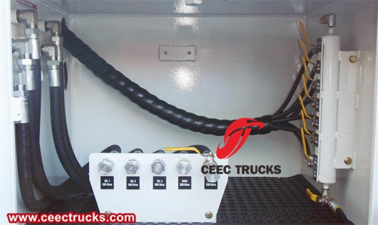Het smeermiddelcompartiment in de truck is ingenieus ontworpen om plaats te bieden aan een breed scala aan smeermiddelen en gereedschappen die essentieel zijn voor het onderhoud van de apparatuur. Strategisch ingedeelde opbergruimtes zorgen voor gemakkelijke toegang tot smeermiddelen, vetspuiten en andere essentiële onderhoudsbenodigdheden, waardoor onderhoudsprocedures worden gestroomlijnd en stilstand wordt geminimaliseerd. De indeling van het compartiment is ergonomisch geoptimaliseerd, wat de workflow van servicetechnici verbetert en de operationele efficiëntie bevordert.