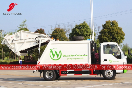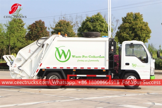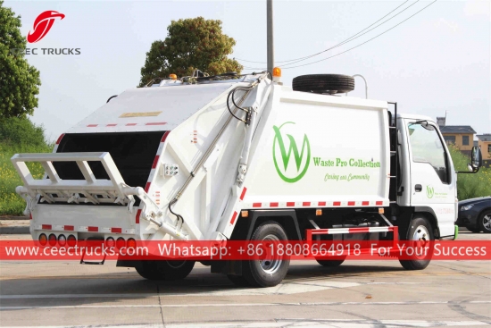 ISUZU afvalwagen met verdichtingsmachine (ook wel genoemd vuilniswagen, ISUZU 4*2 achterlader, gloednieuwe vuilniswagen met compressie, populaire afvalpers, Chinese vuilniscompressorwagen, fabrikant van afvalverwerkingswagens) is Ontworpen voor het dagelijks transport van afval in woonwijken zoals alle soorten steden, grote stations, havens en kades, luchthavens en dichtbevolkte gebieden zoals industriële en mijnbouwbedrijven en militaire eenheden.