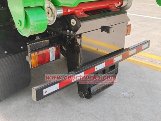 Wanneer het voertuig bij het afvalinzamelpunt aankomt, zorgt het hydraulische systeem ervoor dat de arm omlaag gaat en de haak haakt het voorste verbindingspunt van de afvalbak aan de grond. Vervolgens trekt de arm zich terug om de afvalbak soepel naar de achterbank van de carrosserie te trekken. Na transport naar de aangewezen locatie zorgt het hydraulische systeem ervoor dat de arm omhoog en omklapt, zodat de afvalbak in een bepaalde hoek wordt gekanteld om het afval automatisch te lossen.