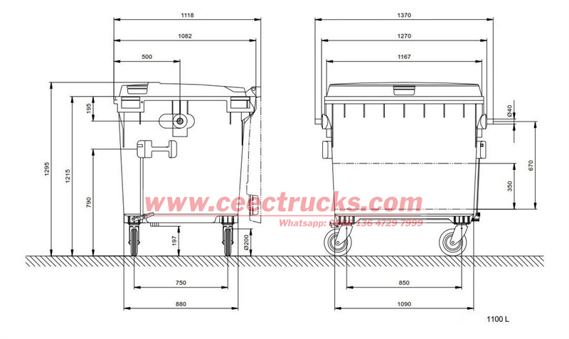 | Voorkant | Ongeveer 230 liter, aan de voorkant van de vuilniswagen | |