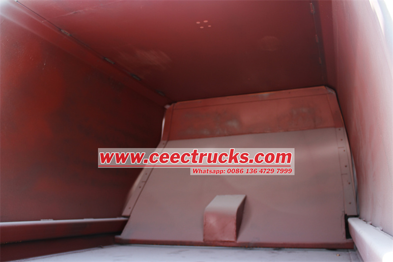 Rear tilting device for 240L and 1100L binsIsuzu 6-wieler gemeentelijke vuilniswagen met achterladerkan ook genoemd wordenISUZU NKR 6cbm afvalpers vuilniswagen, welkeis een krachtige professionalvuilniswagen.De Isuzu 6cbm achterlader-compactorwagen, geproduceerd door CEEC TRUCKS, is uitgerust met een Isuzu 4x2 ELF 600P chassis, een Isuzu 120 pk 4KH1 dieselmotor, Euro 6 2999 ml cilinderinhoud, een wielbasis van 3360 mm, 2+1 zitplaatsen met airconditioning in de cabine, een luchtremsysteem met ABS, een viercilinder-in-lijn dieselmotor en rijhulp. De vrachtwagen heeft 3 bedrijfsmodi, waaronder elektrische CAN-BUS bediening in de cabine, een hydraulische joystick en een elektrische CAN-BUS bedieningskast in de achterklep.