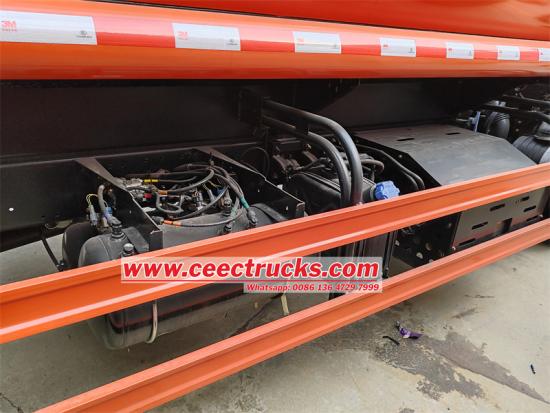 De brandstoftank van de vrachtwagen is een belangrijk onderdeel dat bijdraagt aan de algehele prestaties. Met een capaciteit van 10 kubieke meter kan de tank een aanzienlijke hoeveelheid brandstof vervoeren, waardoor het een efficiënte en kosteneffectieve oplossing is voor bulkbrandstoflevering. De tank is gemaakt van 5 mm dik koolstofstaal, dat bekend staat om zijn sterkte, duurzaamheid en corrosiebestendigheid. Deze materiaalkeuze garandeert dat de tank bestand is tegen de zware omstandigheden van transport en zijn structurele integriteit langdurig behoudt.