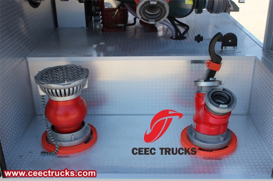 Het bedieningspaneel van deze brandweerwagen is eenvoudig en praktisch en is uitgerust met belangrijke instrumenten zoals een manometer, vacuümmeter, waterdrukmeter en toerenteller. De manometer geeft de druk in het systeem weer en de vacuümmeter bewaakt de zuigstatus om de normale werking van het systeem te garanderen. De waterdrukmeter geeft nauwkeurig de waterdruk van het waterpompsysteem weer en biedt belangrijke referentie-informatie voor brandweerlieden. De toerenteller bewaakt het motortoerental om brandweerlieden inzicht te geven in de bedrijfsstatus van de motor.