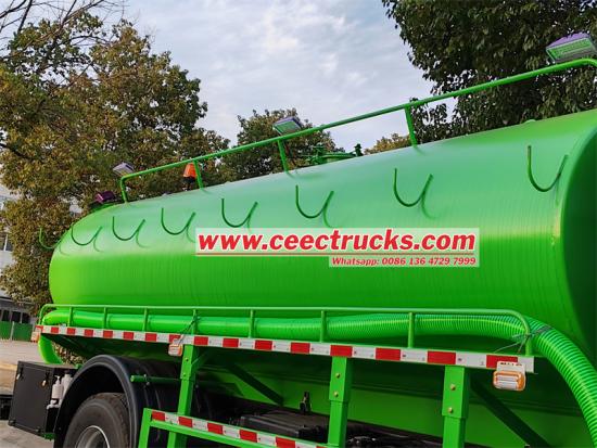 Het voertuig is voorzien van een FVR GIGA-chassis, een wielbasis van 4500 mm, een 6HK1-TCG61 dieselmotor van 240 pk en een FAST 8-versnellingsbak, wat een solide basis vormt voor de personalisering van de slibzuigwagen. De bovenwagen is een zuigtank van 8 m³, gemaakt van koolstofstaal, corrosiebestendig en slijtvast. Uitgerust met een krachtige vacuümpomp en een geoptimaliseerd zuigsysteem, kan het snel en effectief slib, fecaliën en ander vuil in de tank zuigen. Het zuigsysteem is slim ontworpen, wat energieverlies en weerstand vermindert en de zuigkracht verbetert.