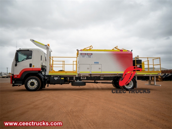 De Isuzu Fuel Lube Service Truck is ontworpen met voldoende opbergruimte voor al het benodigde gereedschap, apparatuur en benodigdheden voor brandstof- en smeerservices. De indeling van de truck is goed doordacht, met speciaal ontworpen compartimenten en lades die gemakkelijke toegang bieden tot alles, van sleutels en doppen tot reserveonderdelen en veiligheidsuitrusting.