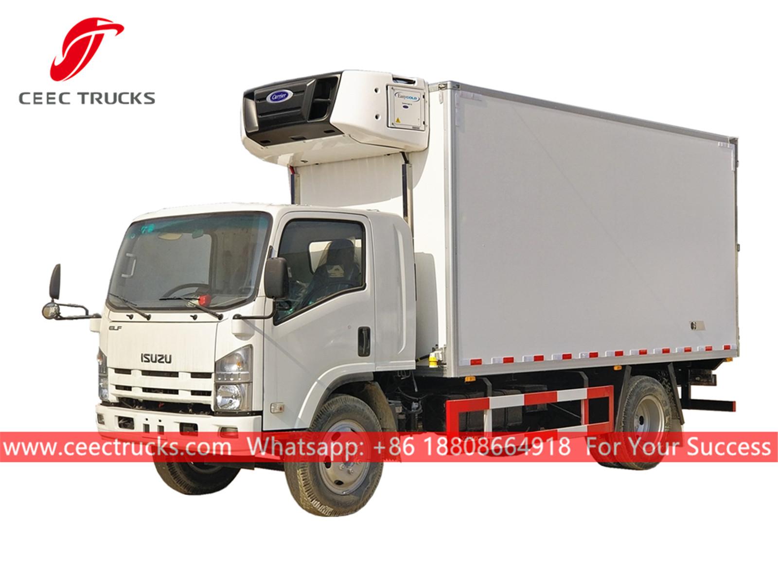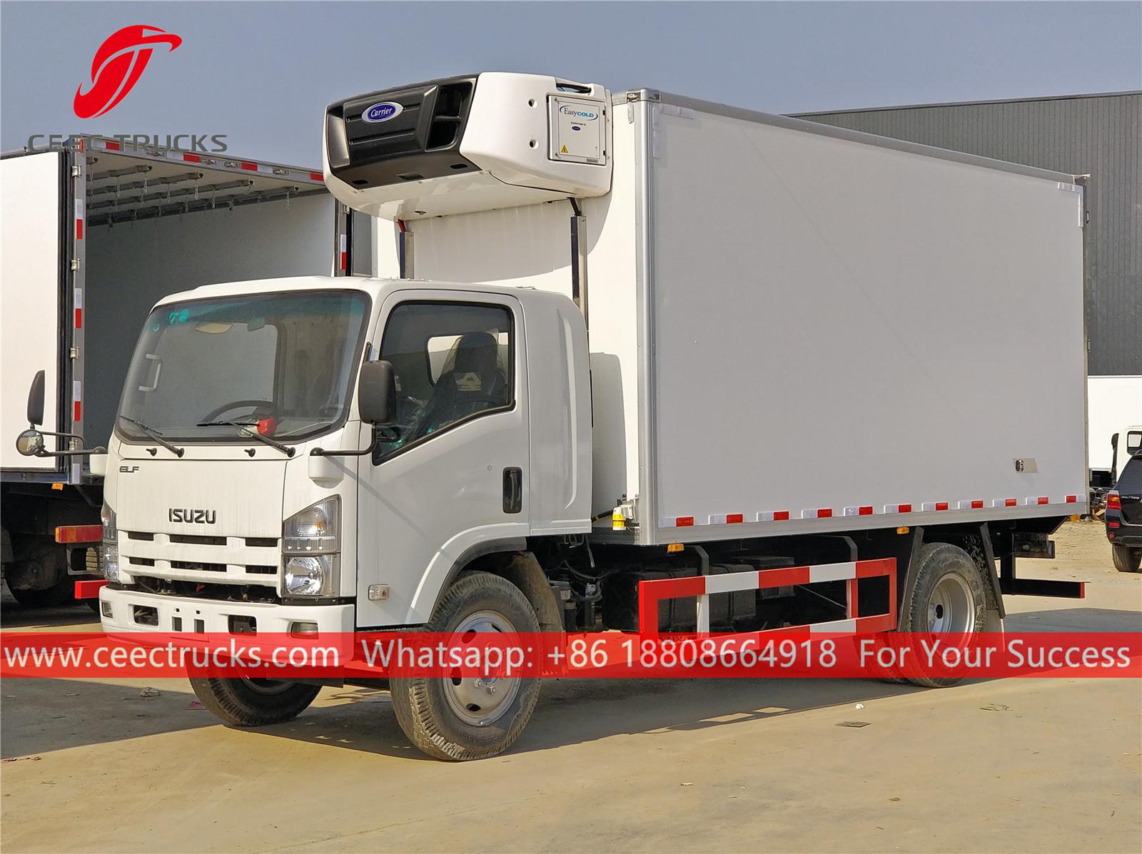Koelwagen ISUZU(OokgenaamdGekoelde bestelwagen, diepvriesvrachtwagen, diepvriesvrachtwagen,Koelwagenvoor voedsel en vlees, Mobiele vrieswagen)iseen bestelwagen of vrachtwagen die is ontworpen om bederfelijke goederen te vervoeren bij specifieke temperaturen.