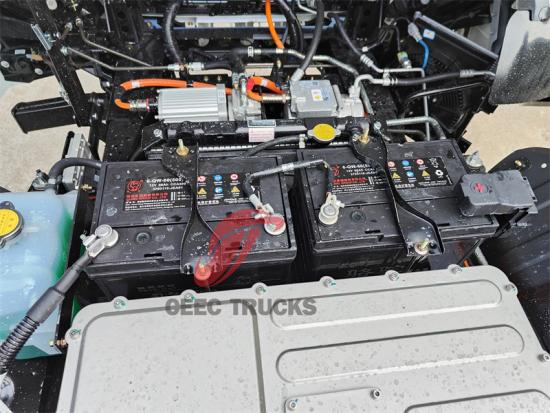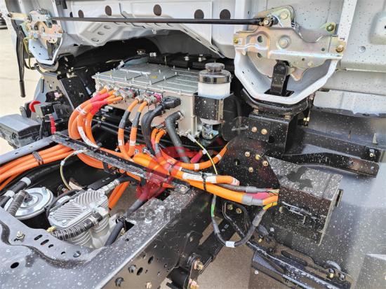 Het accupakket van de Isuzu EVM600 elektrische chassis maakt gebruik van het nieuwste geïntegreerde lithium-ijzerfosfaat-accupakket, ontwikkeld door CATL, met een capaciteit van 106,95 kWh, aan beide zijden van het frame. Vergeleken met traditionele accupakketten kan het enkele accupakket in de nieuwe auto het aantal hoogspanningskabelbomen en -beugels in de behuizing verminderen, wat bijdraagt aan een lager totaalgewicht. Ten tweede kan de actieradius van dit model volgens de WLTC-constantesnelheidsmethode oplopen tot 480 km, rekening houdend met de actieradiusvereisten van vrachtwagenchauffeurs in het dagelijks gebruik.