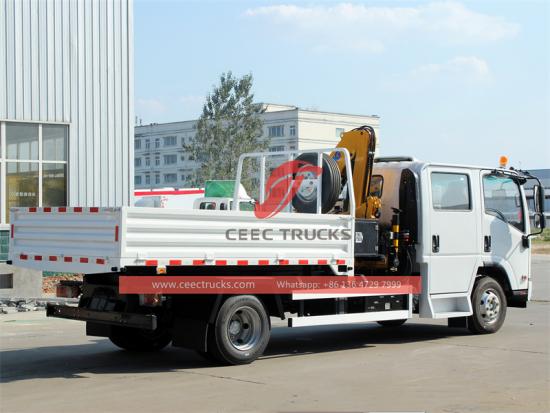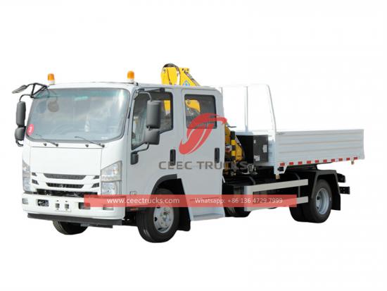 ISUZU NPR dubbele hut vrachtwagen met vouwen kraan |