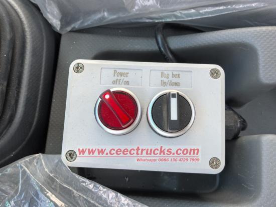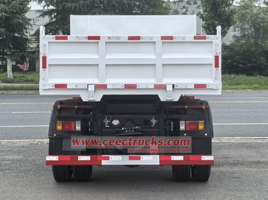 De Isuzu 4x4-dumper is aangepast op basis van het Isuzu ELF NPR-chassis met vierwielaandrijving, met een wielbasis van 3815 mm, uitgerust met een Isuzu 190HP 4HK1-TCG61-dieselmotor, Isuzu MLD-6-versnellingsbak en een kiepbak van koolstofstaal met drie zijden en vier bodems, 4200 × 2200 × 550 mm, centrale heffing, stabiele heffing, schoon en snel lossen, achterdeuren kunnen worden geopend en het voertuig wordt bestuurd door het regelventiel aan de bestuurderszijde, dat eenvoudig te bedienen is.