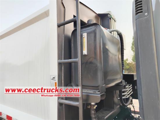 With PLC electric control system and hydraulic valve control systemIsuzu ELF cabine enkelassige achterladeris een modern reinigingsvoertuig dat intelligentie, efficiëntie en milieubescherming integreert. Het is uitgerust met een geavanceerd PLC-automatisch besturingssysteem om de automatisering van het volledige proces van het laden, comprimeren en lossen van afval te realiseren, wat de werkefficiëntie aanzienlijk verbetert. Het krachtige compressiesysteem dat met het voertuig is uitgerust, kan het afval effectief comprimeren tot een capaciteit van 8 m³, wat het transportvolume en de werkefficiëntie aanzienlijk verbetert. Het voertuig is ook uitgerust met een speciaal afgestemd aandrijfsysteem om zich aan te passen aan complexe stedelijke werkomstandigheden, waarbij vermogen en brandstofbesparing worden gecombineerd. Wat betreft milieubeschermingsprestaties, is een meervoudig afdichtingsontwerp gebruikt om lekkage van percolaat te voorkomen en voldoet het uitlaatgasbehandelingssysteem aan de nieuwste emissienormen. Het krachtige compressiesysteem dat met het voertuig is uitgerust, kan het afval effectief comprimeren tot een capaciteit van 8 cbm.