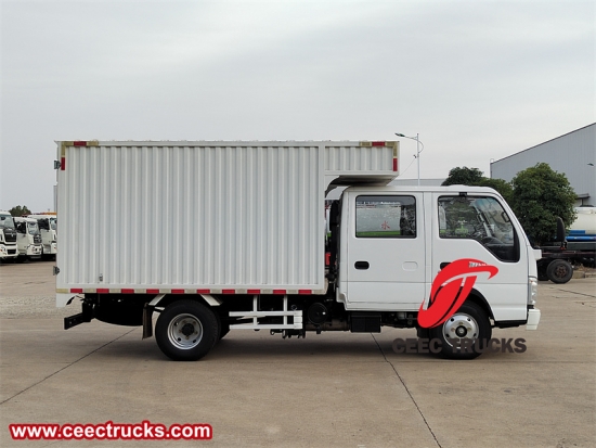 Isuzu ELF vrachtwagen met dubbele cabine ook wel Isuzu 100P dubbele rij bestelwagen genoemd,Isuzu NPR pick-uptruck met dubbele cabine,Isuzu 4x2 2+3 zitplaatsen bestelwagen, Isuzu 100P lichte bestelwagenIsuzu 100P bestelwagen van aluminiumlegering.
