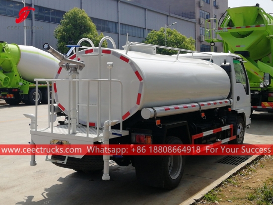 ISUZU 5.000L watertruck, nieuw ISUZU ELF chassis met stuur links, MSB 5-versnellingsbak, ISUZU 130 pk dieselmotor, waterpomp van een bekend merk, met optionele sproeiers voor, midden en achter. Alle lakwerk en logo's zijn afhankelijk van de wensen.