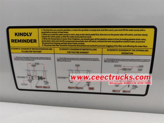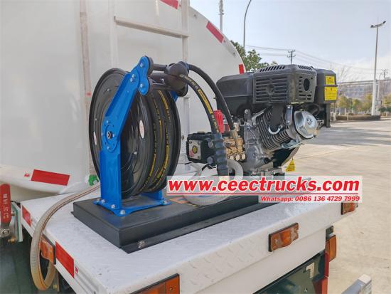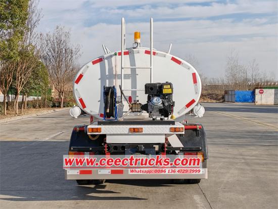 Voor sproeiwerkzaamheden is de wagen uitgerust met een ellipsvormige koolstofwatertank met een capaciteit tot 5000 liter. Dit ontwerp vergroot niet alleen de wateropslagcapaciteit, maar maakt de tankstructuur ook compacter, waardoor de wagen wendbaarder is in smalle stadsstraten. Bovendien zorgt de integratie van een 65QZF-40/50 waterpomp voor een sterke waterdruk en stabiele waterstroom in de sproeiwagen, wat zorgt voor efficiëntie en uniformiteit van de sproeiwerkzaamheden.