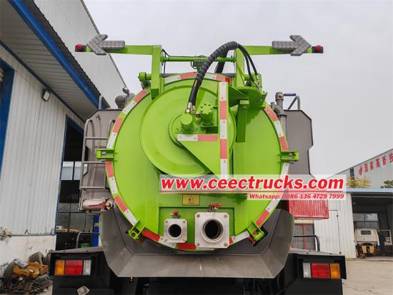 Rioolzuigtank: De vrachtwagen is uitgerust met een rioolwaterafzuigtank met een inhoud van 8 kubieke meter. Deze tank is ontworpen voor het efficiënt verzamelen en transporteren van rioolwater en ander afval uit diverse bronnen, zoals riolen, drainagesystemen en industriële afvalstortplaatsen.