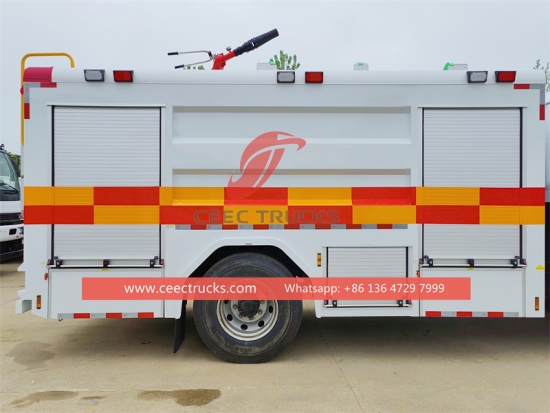 ISUZU FVR Brandweerwagen(Ookgenaamd ISUZU FTR brandweerwagen, ISUZU FTR brandweerwagen, ISUZU FTR 4×2 waterbrandweerwagen,ISUZU FTR brandweervoertuig)Wordt gebruikt om water te transporteren en te leveren aan afgelegen gebieden tijdens natuurbrandbestrijding. Het is meestal een grote vrachtwagen met een grote watertank en een pompsysteem om water te verstrekken. De watertender is ontworpen om door ruw terrein en off-road omstandigheden te kunnen navigeren om gebieden te bereiken waar brandkranen of waterbronnen niet direct beschikbaar zijn.