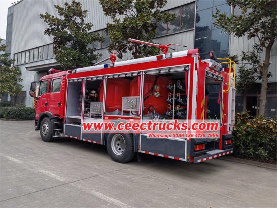 Deze bluswagen met stikstof en droog poeder is gebouwd op basis van een ISUZU FTR-chassis. Hij is uitgerust met een krachtige ISUZU 4HK1-TC60-motor met een cilinderinhoud van 5,19 liter en een vermogen van 205 pk. Hij heeft een 4x2-rijmodus en een MLD-versnellingsbak met 6 versnellingen. De maximumsnelheid kan 90 km/u bereiken, wat hem geschikt maakt voor verschillende complexe wegomstandigheden. Het brandbestrijdingssysteem bestaat uit twee koolstofstalen bluspoedertanks van 2000 liter en 12 stikstofcilinders van 80 liter met een ontwerpdruk van 15 MPa.