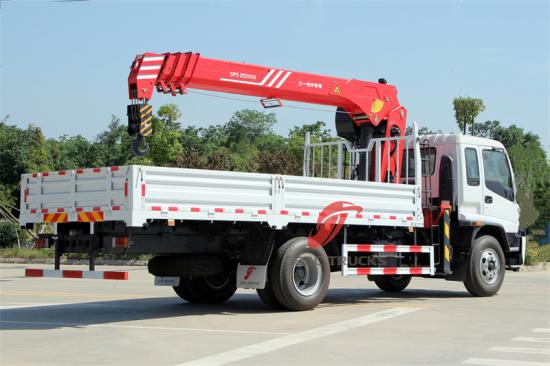 Customized to equipped with remote control deviceDe Isuzu FTR-vrachtwagen met kraan is een krachtige en goed ontworpen vrachtwagen. Hij is uitgerust met een ISUZU-dieselmotor met een krachtig vermogen van 205 pk, die aan verschillende werkbehoeften kan voldoen. De cabine biedt plaats aan drie personen en is voorzien van airconditioning, wat zorgt voor een comfortabele rijomgeving voor de bestuurder. Het bovenste gedeelte van de Isuzu FTR-vrachtwagen met kraan van 6,3 ton is uitgerust met een telescopische kraan met een maximaal hefvermogen van 6300 kg en een volledige 360° rotatie. De kraan weegt 950 kg en heeft een installatieruimte van 850 mm. Het bedieningspaneel kan worden geselecteerd in het Engels of andere talen, wat handig is voor gebruikers met verschillende behoeften. De Isuzu FTR-vrachtwagen met kraan biedt ook een verscheidenheid aan optionele configuraties, zoals een telescopische kraan, een hydraulische kiepbak, aangepaste bakdikte en -hoogte volgens behoeften, en een optionele afstandsbediening.