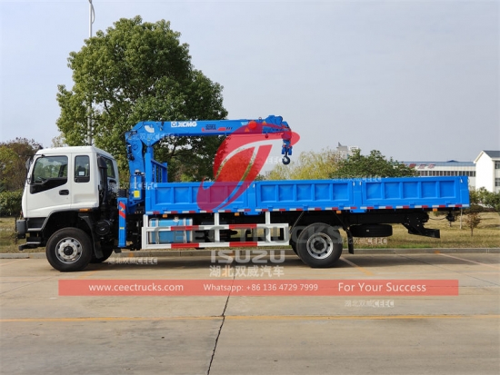 ISUZU FVR 4×4 kraanwagen(ook wel ISUZU-giekwagen, ISUZU 4×4-truck met kraan, ISUZU FVR 4WD-truckgemonteerde kraan, ISUZU 4×4-giekwagenkraan, kraan gemonteerd op vrachtwagenchassis, fabrikant van kraanwagens genoemd)wordt gebruikt om vracht te tillen, zware dingen te laden, vervoeren en lossen.