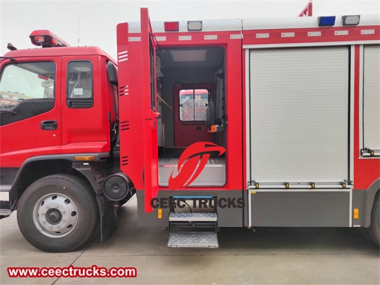 De schuimtank van 3 m³/m³ naast de watertank is een krachtige assistent in specifieke brandsituaties. Vergeleken met de krachtige capaciteit van de watertank, voegt de schuimtank van 3 m³/m³ in de Isuzu FVR 10-tons pompbrandweerwagen extra veelzijdigheid en kracht toe aan het blusarsenaal. Schuim, bekend om zijn verstikkende eigenschappen en verbeterde brandblussende werking, is uitgegroeid tot een professioneel hulpmiddel in de handen van brandweerlieden, waardoor ze bijzonder hardnekkige branden met ongeëvenaarde efficiëntie kunnen blussen.