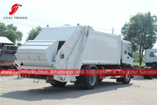 ISUZU FVR Gecomprimeerde vuilniswagen (ook wel genoemd afvalpers, ISUZU FVR achterlader, gloednieuwe ISUZU afvalperswagen, vuilniswagen met perslucht, ISUZU vuilniscompressorwagen, afvalpers fabrikant in China) is Ontworpen voor het dagelijks transport van afval in woonwijken zoals alle soorten steden, grote stations, havens en kades, luchthavens en dichtbevolkte gebieden zoals industriële en mijnbouwbedrijven en militaire eenheden.