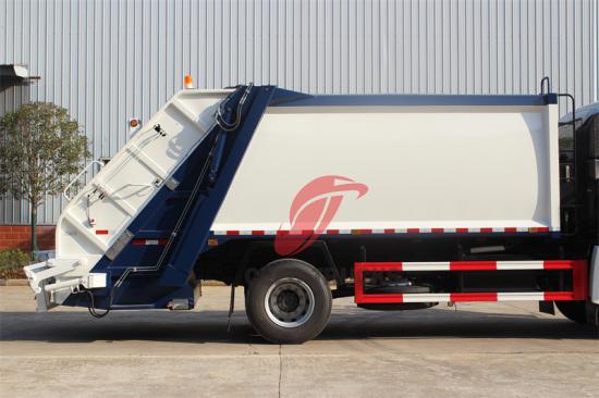 Het verdichtingssysteem van dit model maakt gebruik van geavanceerde technologie, met een hoge efficiëntie en energiebesparing. Het compressiemechanisme is goed ontworpen en kan het afval snel tot compacte blokken comprimeren, wat de laadcapaciteit en transportefficiëntie effectief verbetert. Tegelijkertijd worden geluid en trillingen tijdens het compressieproces effectief beperkt, wat zorgt voor een comfortabelere werkomgeving voor de bestuurder.