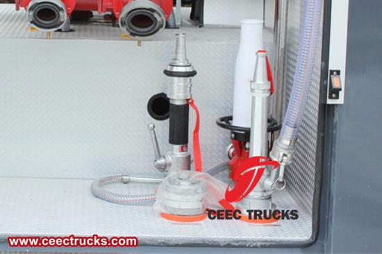 De Isuzu FVZ 12000L schuimbluswagen is uitgerust met een breed scala aan brandbestrijdingsuitrusting en -materialen, zodat brandweerlieden branden effectief en efficiënt kunnen bestrijden. Hieronder vindt u een beschrijving van de verschillende brandbestrijdingsmiddelen aan boord van het voertuig: