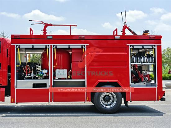 Dit is een poederbrandweerwagen gebouwd op het nieuwe ISUZU GIGA FTR-chassis. Hij is uitgerust met een krachtige ISUZU 4HK1-TC. G 60-motor met een cilinderinhoud van 5,19 liter en een vermogen van 205 pk. Hij heeft een 4x2-rijmodus en is uitgerust met een MLD-6-versnellingsbak. De maximumsnelheid kan 95 km/u bereiken, wat zich aanpast aan verschillende complexe wegomstandigheden. Wat het brandbestrijdingssysteem betreft, is de Isuzu-brandweerwagen uitgerust met een koolstofstalen poedertank van 1000 kg, plus een watertank van 3000 liter en een schuimtank van 2000 liter.