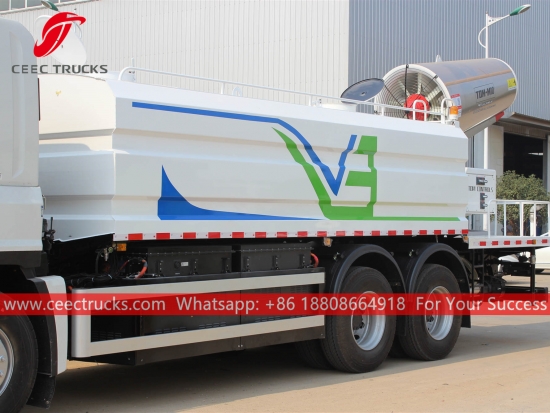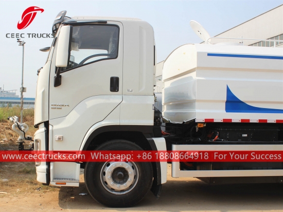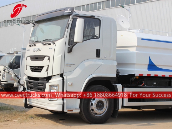 ISUZU GIGA 16.000L watertankwagen met stofbescherming, ISUZU GIGA chassis met links stuur, ZF handgeschakelde versnellingsbak met 16 versnellingen, ISUZU dieselmotor van 380 pk, waterpomp van een bekend merk, optioneel met sproeikop voor, midden en achter. Alle lakwerk en logo's zijn naar wens aan te passen.