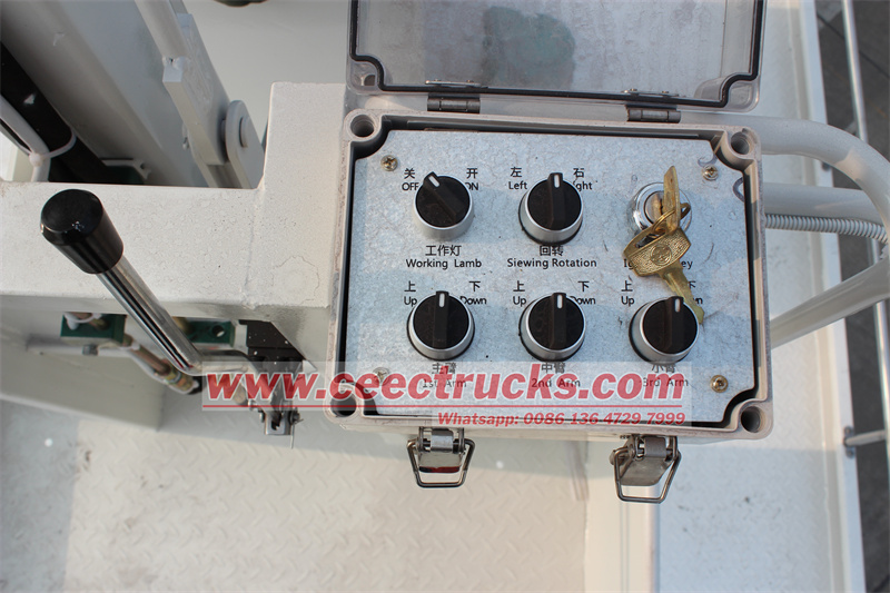 De 20M Isuzu GIGA 3-delige opvouwbare armhoogwerker maakt gebruik van een volledig automatisch afstandsbedieningssysteem, uitgerust met een intelligente controller en LCD-scherm, waarmee amplituderegeling, automatische gashendel, belasting, amplitude, hoogte en andere bedieningsinformatie kunnen worden gerealiseerd.Isuzu GIGA 20m mobiele hoogwerker met stoelbediening zoals hieronder: