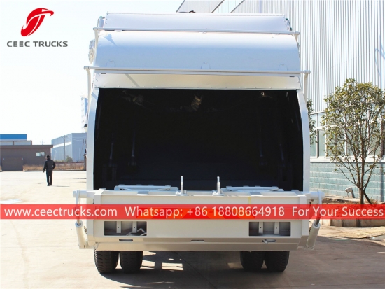 ISUZU 12cbm compressor vuilniswagen, het vrachtwagenchassis is voorzien van een ISUZU 380 pk dieselmotor en een snelle 12-versnellingsbak. PLC-bedieningskast voor eenvoudige bediening. Alle lak en logo's worden naar wens van de klant geleverd.