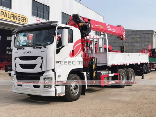 ISUZU GIGA vrachtwagen met kraan(ook wel Palfinger 16 ton telescopische giek kraan, ISUZU GIGA kraanwagen, ISUZU GIGA autolaadkraan, ISUZU 380PK vrachtwagen met kraan, Telescopische giek kraanwagen te koop, ISUZU vrachtwagen met kraan, giek kraan gebaseerd op ISUZU GIGA chassis, ISUZU 10 wieler vrachtwagen met kraan genoemd)wordt gebruikt om vracht te tillen, zware dingen te laden, vervoeren en lossen.