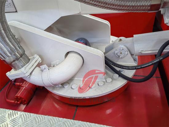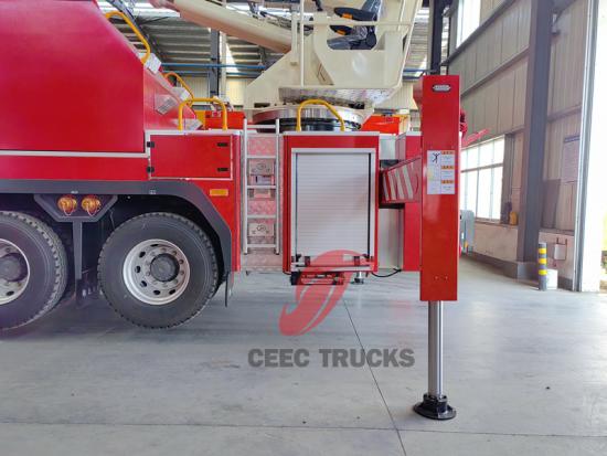 De leiding van het brandbeveiligingssysteem bestaat uit een roestvrijstalen leiding en een aluminiumlegering. De waterleiding bereikt het bovenste voertuig via de centrale roterende behuizing, die kan voldoen aan de behoeften van water- of schuimvoorziening. Aan de bovenarm bevindt zich een elektrisch, op afstand bestuurbaar waterkanon, dat de waterstroomvorm kan veranderen (rechtuit en spatwater) en water of schuim kan sproeien. Aan de onderkant van het voertuig bevindt zich een waterinlaat om te voldoen aan de eisen voor brandblussing met een grote stroom in hoogbouw.
