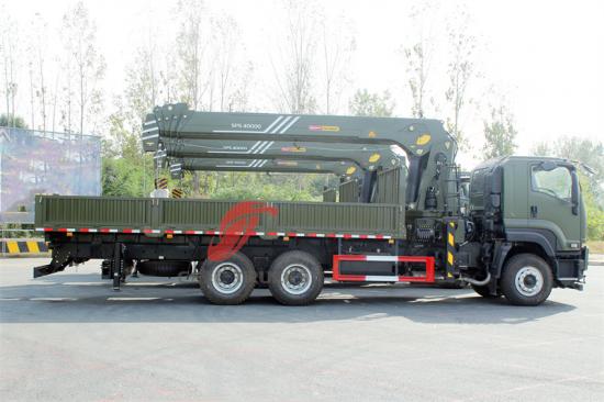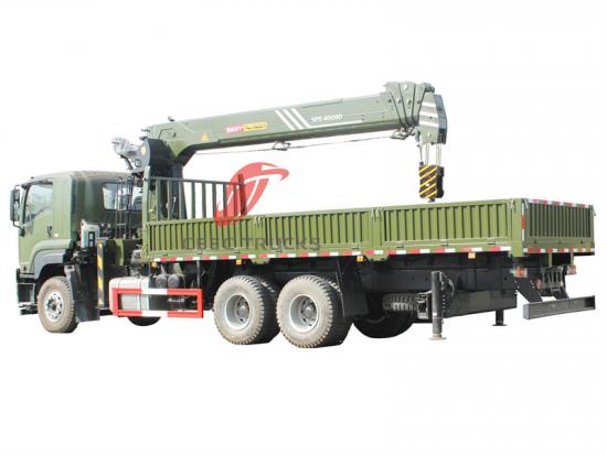 Deze Isuzu GIGA 6x4 mobiele vrachtwagen gemonteerd 14 ton kraan is een krachtige en goed ontworpen vrachtwagen. Hij is uitgerust met een ISUZU 6UZ1 dieselmotor met een krachtig vermogen van 380 HP, die aan diverse werkbehoeften kan voldoen. De cabine biedt plaats aan drie personen en is voorzien van airconditioning, wat zorgt voor een comfortabele rijomgeving voor de chauffeur. Het bovenste deel van de Isuzu GIGA 14 ton vrachtkraanwagen is uitgerust met een telescopische giekkraan met een maximaal hefvermogen van 120 00kg en een volledige 360° rotatie.