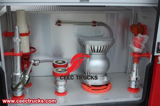 De Isuzu GIGA 8x4 Dry Pmoeder wwater Fschuim Fwoede TDe ruck is uitgerust met een reeks geavanceerde brandbestrijdingsuitrusting, waardoor de gevechtsmogelijkheden worden vergroot. Denk hierbij aan brandblussers, wateropvangsystemen, waterfilters, waterverdelers, brandslangen, waterpistolen, schuimpistolen, brandbijlen, scheppen, houwelen, sleutels, ladders en snijgereedschap. Deze gereedschappen zijn opgeborgen in overzichtelijke compartimenten in de carrosserie, zodat brandweerlieden er snel bij kunnen wanneer nodig.
