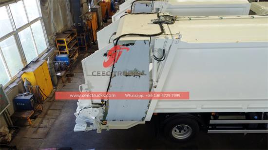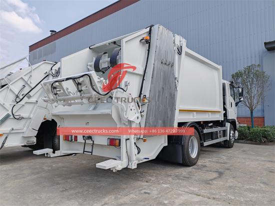 De kern van de achterlader voor afvalverwerking is het persmechanisme (zoals schrapers en glijplaten) om het losse afval te verdichten. De Isuzu GIGA F-serious 16CBM afvalverdichtingswagen beweegt zich meestal heen en weer van de achterkant naar de voorkant van de bak.