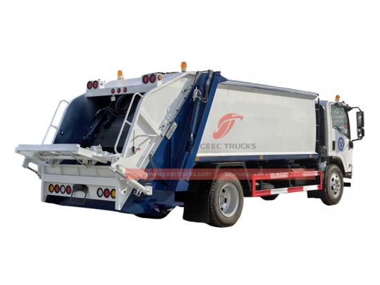 Rear tilting device for 240L and 1100L metal binsDe 6 CBM rear loader truck is built on the Isuzu light duty chassis, equipped with an Isuzu 4HK1 diesel engine with a maximum power of 190HP and a peak torque of 560Nm, matched with a 6-speed manual transmission MLD. It is powerful and stable, and can challenge all kinds of difficult roads. The garbage compactor bin is made of high-tensile steel, and key parts such as the floor (4mm) and side panels (3mm) are reinforced by laser/plasma cutting and automated welding processes to ensure the durability of the body. With its efficient compaction, strong power, modular design and strict manufacturing standards of the CEEC trucks factory, the Isuzu 6 CBM rear loader truck has become an ideal solution for urban garbage disposal around the world.