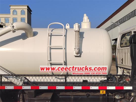 2. Vacuümtank met grote capaciteit: DezeISUZU rioolzuigwagenis uitgerust met een vacuümtank van 4000 liter, die voldoet aan de eisen van de meeste stedelijke reinigingstaken. Bovendien is de tank gemaakt van 6 mm dik hoogwaardig koolstofstaal, met interne schotten en een corrosiebestendige behandeling, wat de duurzaamheid en veiligheid van het voertuig garandeert.