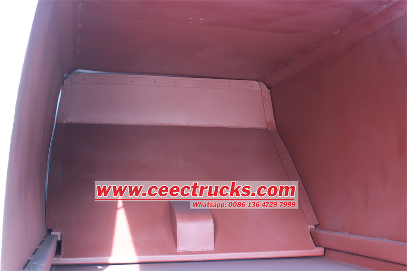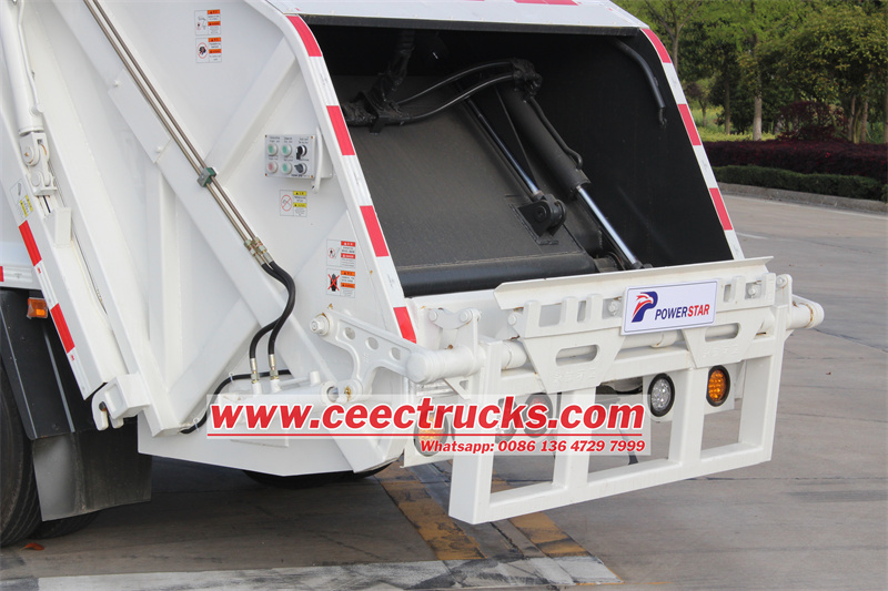 Bestaande uit een hermetische afvaltank, hydraulisch systeem en besturingssysteem. De gehele vrachtwagen is hermetisch afgesloten en kan het afval automatisch comprimeren en storten. Het afvalwater dat tijdens het comprimeren ontstaat, stroomt volledig in de afvaltank. |