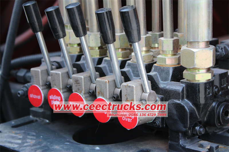 DeISUZU vuilniswagenMaakt gebruik van de speciale aftakas (PTO) om vermogen van de motor te krijgen en dit vervolgens over te brengen naar de tandwielpomp om de pomp te laten draaien. De pomp begint te werken om hydraulische olie via leidingen naar cilinders te transporteren, en cilinders zorgen er vervolgens voor dat alle apparatuur van de vuilniswagen werkt, inclusief de achterklep, duwplaat, glijplaat, schraper en kantelmechanisme. Vervolgens worden alle functies van de vuilniswagen gerealiseerd.