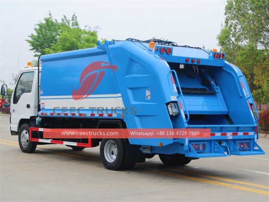 ISUZU 6cbm afvalperswagen, het chassis is voorzien van een ISUZU 130 pk dieselmotor en een MLD 6-versnellingsbak. PLC-bedieningskast voor eenvoudige bediening. Alle lak en logo's worden naar wens van de klant geleverd.