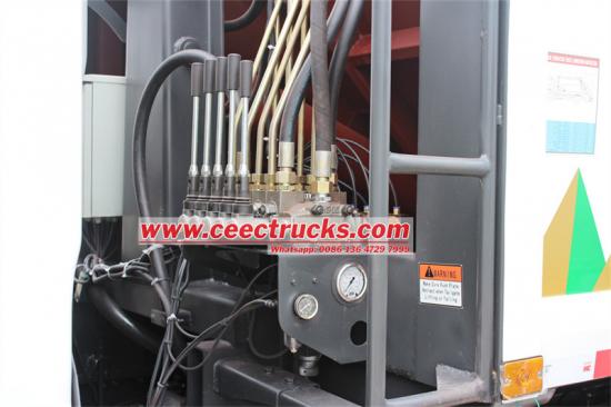 ——Hydraulisch systeem:Het bestaat uit een brandstoftank, een oliepomp, een meerwegklep, een hydraulische cilinder, een pijpleiding, enzovoort. De hydraulische druk is doorgaans ingesteld op 16 MPa en de kracht wordt via de aftakas van de motor verkregen om laden en lossen, compressie, heffen en andere handelingen uit te voeren.