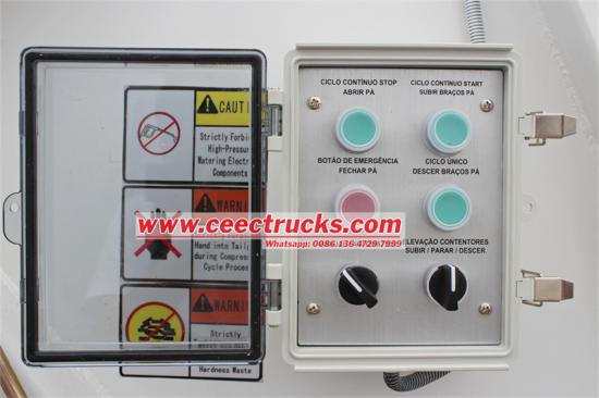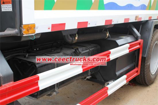 ——Chassis systeem:Isuzu NPR vuilniswagen, uitgerust met een speciale Isuzu 4HK1-motor, 190 pk, versnellingsbak (zoals een MSB vijfversnellingsbak) en aandrijfsysteem, voldoet aan de emissienormen National V/National VI. Het chassis is uitgerust met luchtremmen, ABS, originele airconditioning en een afstandsbediening voor een stabiele rijervaring en comfortabele bediening.