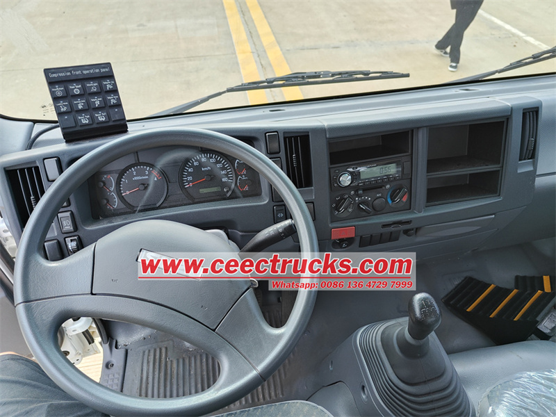 CAN-BUS electric control system in cabinDe Japanse ISUZU-vuilniswagen, ook bekend als deIsuzu NPR afvalperswagenofISUZU 10yard achterlader, staat symbool voor Japanse technische excellentie op het gebied van stedelijke sanitatie. Dit gespecialiseerde voertuig is speciaal ontworpen voor de efficiënte inzameling en verwerking van huishoudelijk afval en ander samendrukbaar afval in stedelijke omgevingen.