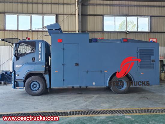 Isuzu GIGA Het waterkanonvoertuig tegen oproer is ontwikkeld volgens de huidige internationale trend van populaire producten tegen oproer. Het beschikt over een perfecte functie voor beheersing van oproer over lange afstanden en een volledig zelfbeschermingssysteem, waardoor het de eerste keus is voor het verspreiden van relschoppers zonder blijvende lichamelijke schade te veroorzaken.
