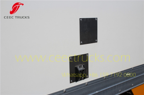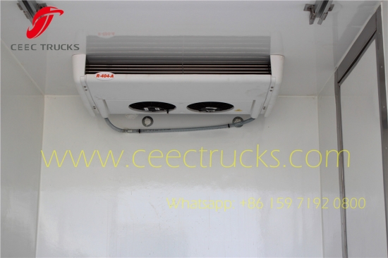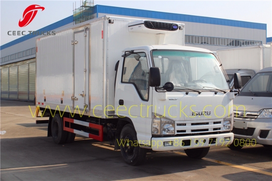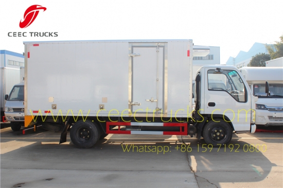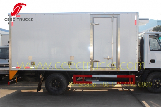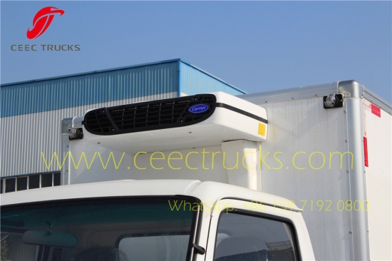 ISUZU koelwagen, Midden- en Oost-Europa. Glasvezelversterkt kunststof, dikte van de isolatielaag meer dan 8 mm. Standaard America Carrier koelunits voor hoge prestaties, de laadbakinhoud kan optioneel 6-10 kubieke voet (CBM) zijn. ISUZU LHD chassis, 98 pk Japanse technologie motor, MSB handgeschakelde 5-versnellingsbak.