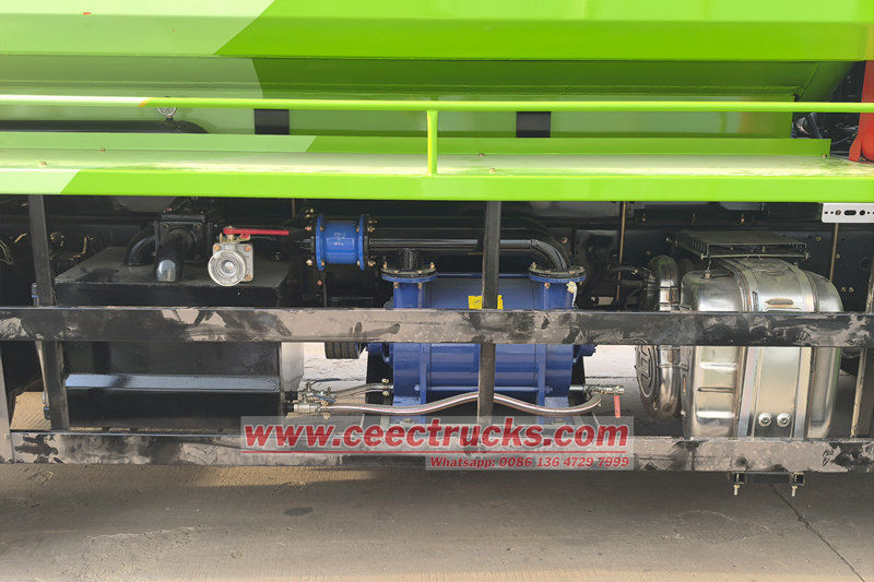 Het voertuig is uitgerust met een hogedrukwaterpomp die het schone water op een druk van 16-240 MPa brengt en hardnekkige verstoppingen, zoals sedimenten, boomwortels en betonblokken op de binnenwand van de pijpleiding, via een roterende sproeier verwijdert en wegspoelt. Tegelijkertijd wordt een vacuümpomp gebruikt om een onderdruk in de tank te creëren, waardoor het vermalen slib en rioolwater via de rioolzuigbuis in de tank wordt gezogen. De hydraulische lier wordt gebruikt om het uit- en intrekken van de hogedrukleiding gedurende de hele operatie te regelen, zodat de operator het baggeren van de diepe pijpleiding kan voltooien zonder de put in te hoeven gaan.