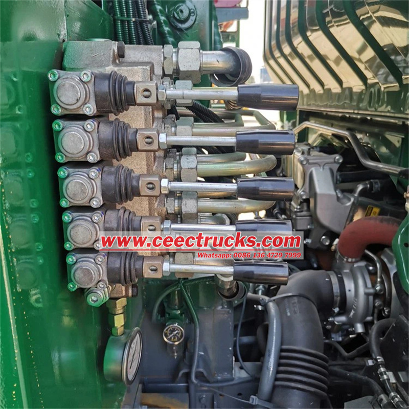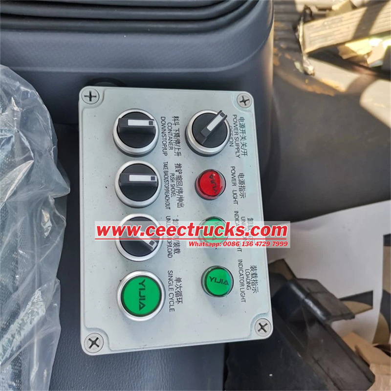 De verdichtingscarrosserie van onzeISUZU achterlader vuilniswagenis een nieuw type ribloze constructie met een prachtige boogvorm en een effectief compressievolume van 10 kubieke meter. De achterklep is voorzien van een klapmechanisme, met zowel elektronische als handmatige bediening. De bedieningskast is in de cabine en aan de achterkant van de achterklep geïnstalleerd. Aan de achterkant bevindt zich een 3 mm dikke rubberen afdichtstrip en een grote vuilwatertank. Het voertuig kan naar wens worden bedrukt met patronen en tekst.