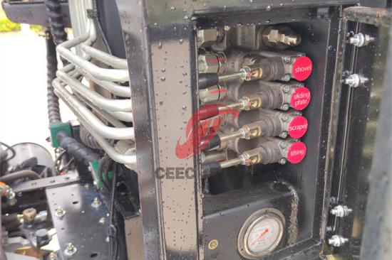 3. Lossen: Wanneer lossen nodig is, wordt de afvalbak naar een geschikte positie getild door de meerwegomkeerklep of de CAN-bedieningskast te bedienen. Vervolgens wordt de duwplaat bediend om het afval uit de afvalbak te duwen. Na het lossen wordt de afvalbak gereset door de meerwegomkeerklep of de CAN-bedieningskast te bedienen om het volledige losproces te voltooien.