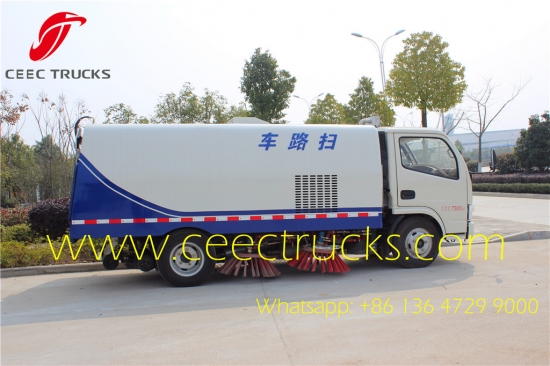 Dongfeng veegwagens, Chaoyang-motor 95 pk, handgeschakelde 5-versnellingsbak, 5CBM roestvrij staal met 4CBM stofreservoir en 1CBM schoonwatertank, veel geëxporteerd naar Myanmar en de Filipijnen.