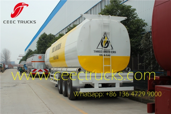 Beste kwaliteit 40 CBM brandstoftankoplegger, Euro-normkleppen, FUWA / BPW-as voor optioneel, Luchtremmen voor veilig rijden, JOST-landingsgestel, 50# richtingsgestel, Tank van koolstofstaal met een capaciteit van 40.000 liter te koop in Afrika